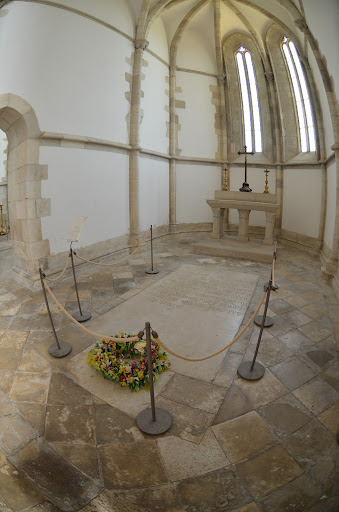 Frente ao altar, num absidíolo do lado sul, encontramos a sepultura em campa rasa do descobridor do Brasil, Pedro Álvares Cabral, e de sua esposa D. Isabel de Castro, quarta neta do fundador...
