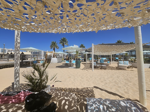 Read moreWhat a lovely find in Faro. A chilled vibe private beach, with friendly professional staff. The decor is cool and calm and the music is smooth without being too loud, allowing kids to nap, and still setting a summer buzz. The coffees and coconuts are delicious as are the complimentary slices of pineapple. We can't fault this place at all. For both adults and kids, we are all relaxed and happy. Particular thanks to Debra Miguel and Luis for their kind...