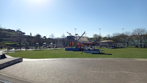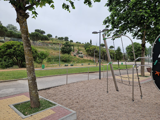 Parque super cuidado e ótima opção para passar um tempo em família com as crianças ou jogar a bola entre amigo, praticar desporto em meio a natureza. Tem vários tipos de brinquedos para escalarem com percursos bem diferentes para as crianças. Parque cheio de sombras, com mesas e cadeiras para picnic, casa de banho bem cuidada, bebedouros, café, gelados, duas quadras para futebol, uma com relvado sintético super cuidada e outra de piso, vários aparelhos para fazer exercícios espalhados pelo área das sombras e um lago giro com fonte central, ambiente calmo pra relaxar.. Super indico uma visita, a não perder também tem um baloiço no alto da colina com vista panorâmica. Também tem mesas mais reservadas para festa de anos no meio...