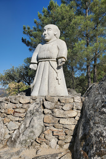 Estávamos a subir as escadas quando começo a chover, tive algum receio pela escadas e a possibilidade de escorregar pelo que subi as escadas todas, no entanto tem um bom local para para o carro, tem imagem de nª senhora cá em baixo e mesmo mais à frente vê-se a cascata de agua que desce por essa zona.