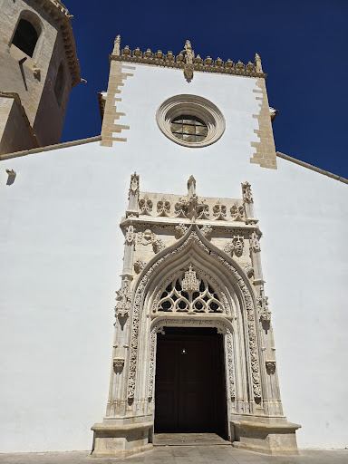 I stumbled upon this church while exploring the main square in Tomar and was really impressed. The architecture is stunning, especially the front entrance with its detailed stonework and the tall bell tower—it’s hard to miss.