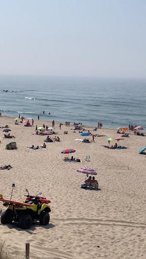 Such a lovely beach with life guards , the sand is white and soft , the beach is slightly sloped , there is a board walk above the beach through the dunes , it is a wide beach with plenty of room for all , large car parks, kiosk for refreshments. The sea is shallow but not always recommended to swim , there are a lot of surfers and other water sports . It is a lovely...