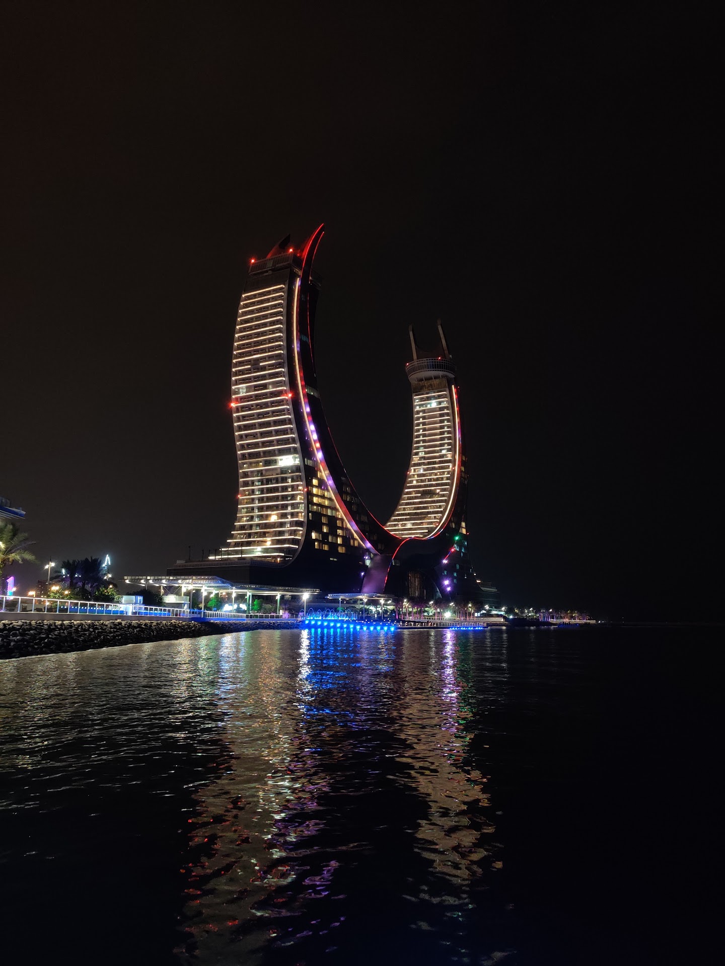 Read moreCrescent tower in Lusail inspired by Qatari swords. Two curved swords in the emblem of Qatar. One of the world’s most recognised hospitality brand identities. The complex is integrated with landscaped gardens and rises from a podium, giving the impression that it is floating on the sea. They provide top most services. Rhe view from the tower is astonishing, especially the on going flights beauty. Water front view and Lusail town view both are amazing to watch for...