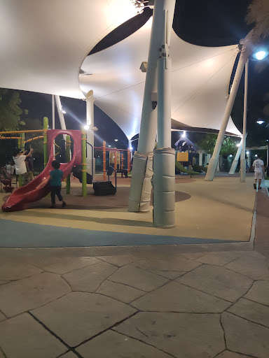 What it has: Play area for kids with slides & others The play area has a soft flooring so kids will not get hurt if they fall Small fenced area for football/basketball Toilets- clean & well maintained Drinking Water dispenser Walkway for adults to get some exercise A few benches to sit Clean & well kept grassy area for picnics Security staff Park is well fenced so no danger of kids running out adequate parking space