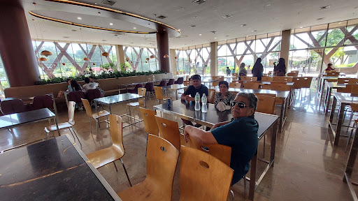 The foodcourt has contemporary design with tree like cutouts enclosing the large glasses which give full view of the surroundings when you are sitting inside.