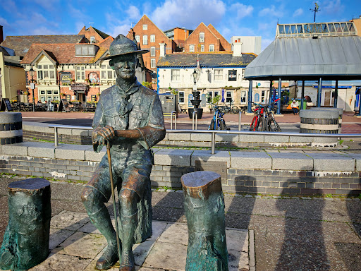 A statue of Robert Baden-Powell, founder of Scouting, is installed on the Quay in Poole harbour, Dorset on the south coast of England. The statue, erected in 2008, is a life-size bronze of Robert Baden-Powell by sculptor David Annand.