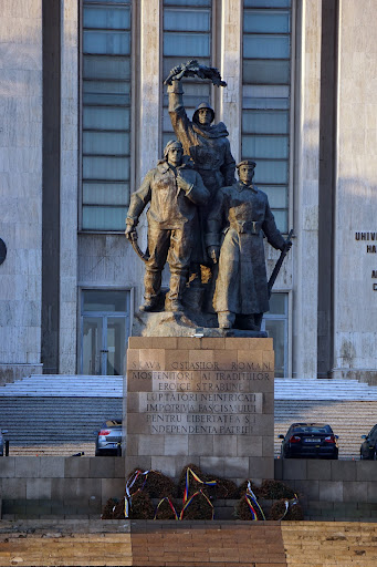 Read moreInteresting place if you are looking for a calm mix between an almost deserted and oversized administrative building, equally deserted adjacent roads and a solemn monument to the soldiers of Romania "fearless fighters against fascism for the liberty and independence of their fatherland". An overpriced market can be sometimes found down in the square. Good place to sit down on the stairs and appreciate some views from the city away from the crowd, maybe reflect on its symbolism and relax with the sound of the fountains while gossiping about what happens...