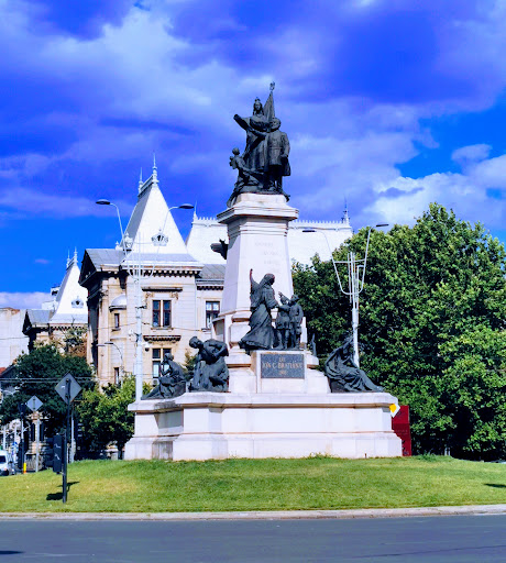 Read moreMonumentul îi este dedicat lui Ion C. Brătianu, una dintre personalitățile emblematice ale politicii românești..lider pașoptist, deputat ales în Adunarea Ad-Hoc în iunie 1857 și în Adunarea Electivă doi ani mai târziu, care îl va alege pe Alexandru Ioan Cuza domn al Țării Românești, acesta e primul demnitar român care l-a întâlnit pe domn la Düsseldorf..a fost deputat în Adunarea Costituantă care l-a proclamat pe principele Carol domnitor al României. Ion C. Brătianu este fondator al Partidului Național-Liberal (1875), co-președinte al acestuia până în 1882-1883, președinte până în 1891..a îndeplinit aproape toate funcțiile de ministru începând din 1866 și a fost Președinte al Consiliului de Miniștri (prim-ministru) între 1876 – 1888 (cu o întrerupere în aprilie-iunie 1881), cea mai lungă guvernare din istoria României moderne..Ion C. Brătianu se stinge din viață în 1891, cu doar câteva zile până la împlinirea vârstei de 70 ani, iar moștenitorii săi politici decid eternizarea memoriei acestuia prin ridicarea unui monument în centrul Bucureștiului...astfel, în doar câteva zile va lua ființă un comitet care avea drept scop ridicarea prin subscripție publică a statuii lui Ion C. Brătianu...în vederea realizării acestui deziderat, comitetul a organizat un concurs internațional de proiecte, în octombrie 1900, în urma căruia a fost aleasă propunerea oferită de Ernest Dubois...Municipalitatea a amenajat pentru amplasarea statuii o piață la intersecția bulevardului Carol/Elisabeta cu strada Colței, care, după ce a fost sistematizată, a primit numele I.C. Brătianu...dezvelit în anul 1903, monumentul lui Ion C. Brătianu a fost, prin dimensiuni și compoziție, cel mai mare monument al momentului, dar și cel mai complex, având un număr de 11 personaje, un element ornamental și două basoreliefuri care marcau toate evenimentele politice importante la care acesta a participat, turnate în bronz și poziționate pe un soclu piramidal construit în mai multe registre..în fruntea monumentului era înfățișat Brătianu în postura de orator, în picioare, îndreptat către vest, cu mâna dreaptă arătând către nord, având o atitudine semnificativă pentru idealul național..alături se găsea figura alegorică a României purtând drapelul și un soldat îngenunchiat privind către acesta, într-o rememorare a Războiului de Independență..in zona mediană se regăsea Patria, explicând generațiilor viitoare, reprezentate de doi copii, rolul istoric jucat de Brătianu, arătând către inscripția "Prin mintea, prin inima și prin brațele noastre"..virtuțile omului politic sunt reprezentate la nivelul de jos al monumentului prin patru alegorii feminine poziționate pe cele patru colțuri ale bazei soclului: Elocvența, Patriotismul, Independența și Curajul. Cele două altoreliefuri, unul reprezentându-l pe Ion Brătianu în 1848, vorbind națiunii, iar celălalt, pe prințul Carol salutat la sosirea sa în România de Ion Brătianu și de popor se găseau pe lateralele nord/sud ale registrului al doilea..la realizarea ansamblului monumental, sculptorul a colaborat cu arhitectul Petre Antonescu, ansamblul fiind conceput cu elemente pe toate cele patru fațade...după realizarea acestui monument, Ernest Dubois și arhitecții Petre Antonescu și P. Seewald vor fi decorați de regele Carol I, devenind Comandori al Ordinului Coroana României..Monumentul lui Ion C. Brătianu a fost demolat de regimul comunist în 1948, odată cu alte monumente și statui considerate "dăunătoare"...refacerea monumentului a fost aprobată de Consiliul General al Municipiului București în ședința din 30 ianuarie 2014, în urma căreia a fost organizat un concurs în vederea reamplasării pe locul inițial, soluția câștigătoare fiind propunerea sculptorului Ionel Stoicescu...a fost realizat în ateliere din București și din țară...inaugurarea oficială, stabilită inițial pentru 10 octombrie, și amânată din motive politice, a avut loc la 26...