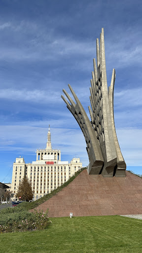 În perioada 21 aprilie 1960 - 4 martie 1990, pe platoul din fața Casei Scînteii s-a aflat Statuia lui Lenin din București, o expresie greoaie, în bronz, a dictaturii comuniste de inspirație sovietică. În mod simbolic, pe 30 mai 2016, în exact același loc a fost amplasat Monumentul „Aripi”, un monument închinat eroilor rezistenței anticomuniste din România[4].