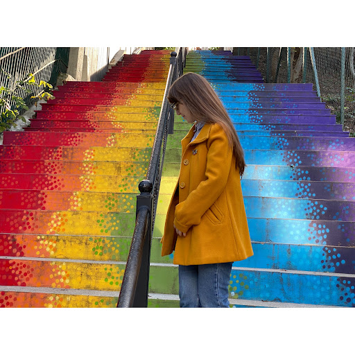 Scările sunt refăcute inegal, sunt periculoase, vopseaua stridentă nu are nicio legătură cu estetica și istoria zonei, iar mâna curentă originală, din fontă turnată, a fost înlocuită cu o țeavă metalică alunecoasă. După fiecare ploaie, scara se umple de noroi care curge dinspre deal, iar curcubeul e deja pătat.