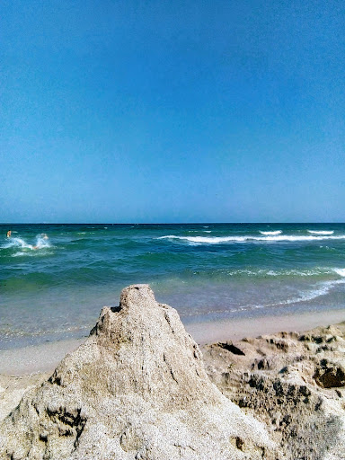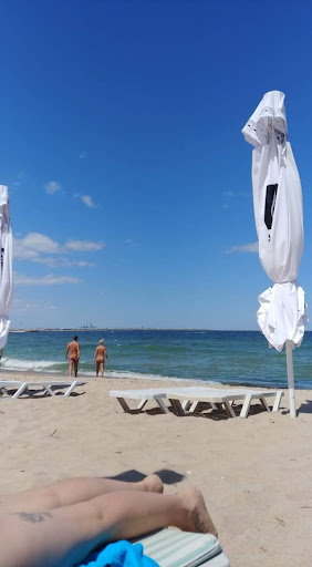 Quite nice beach with optional swimming suite 🏖 (nudist allowed) Sun bed with umbrella it's 20 Lei. Pretty ok as umbrella is huge If you want take your blanket and sit on a sand for free It's not the cleanest, nor dirtiest beach around Bar makes everything better, cold drinks, snacks just a few steps away Not too many rocks around. Pretty good and smooth entrance to the water Lifeguards! 🚑 They really care and pay attention to their work! At first they seems to be annoying as whistle a lot. After a while I realised that they whistle on stupid people who leaving safe zone and swimming just under speedboats and jet ski.