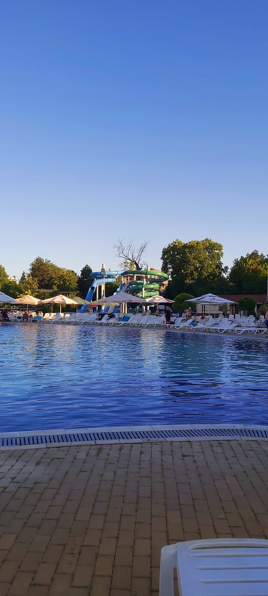 I loved this place. The water in the pools is warm and hot, not to mention that it is thermal water. According to doctors, thermal water can be both used internally (diseases of the digestive tract, stomach, small and large intestins urinary tract, gallbladder, metabolic and endocrine disorders, etc.) and externally, by bathing. After bathing in these pools (15-20 minutes in, 30 min out), people who suffer from rheumatic, chronic and degenerative diseases, post-traumatic diseases, hips and knees prostheses, operated cervical and lumbar disc herniation, diseases of the central and peripheral nervous system, paresis, paralysis, neuritis, polyneuritis, circulatory system, arteritis, etc. see great results in movement and tone. It is a great way to spend your time, with your family, because there are also slides for the kids, pools for the small ones, pools with water of 34-36 degrees Celsius, a volleyball court, professional massage therapists and lots of showers to wash of after sunbathing. The program of the resort is from 08:00 to 19:00 and if you want to exist the resort for lunch, you will have to pay another ticket. Do not worry, there is also a cafeteria and lots of sweet shops where you can buy pastry...
