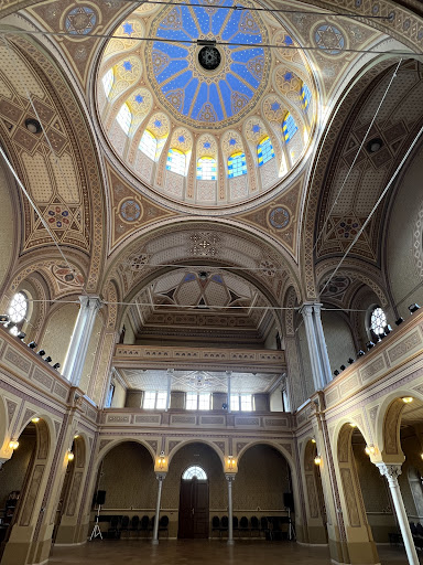 Read moreRo. - Sinagoga Neologă Sion din Oradea a fost construita între anii 1877 si 1878, în contextul sciziunii iudaismului din anul 1870 de comunitatea evreiasca Ortodoxa, folosind un stil Neo Maur. Sinagoga este o replica simplificata a celei din Nuremberg, similara in stil cu Cupola Stâncii de pe Muntele Templului. Interiorul este decorat cu picturi in stil Maur, ornamente geometrice cu motive centrale axate pe Steaua lui David si roseta cu 8 colturi, alaturi de motive repetitive la infinit. Acestea sunt pictate intr-o armonie cromatica, care se imbina intr-un ritm si rafinament vizual.