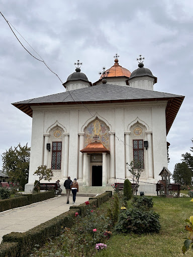 I recently visited Cernica Monastery on weekend day, and it was my first time there. Being a weekend, the monastery was quite crowded, which added a bustling energy to the otherwise peaceful setting. The day was cloudy and windy, creating a solemn atmosphere. In contrast, the vibrant rose bushes in the courtyard were strikingly beautiful, their vivid colors standing out against the gray skies and lending a sense of hope amidst the gloom. The frescoes on the walls were equally captivating, with their intricate details and rich storytelling.