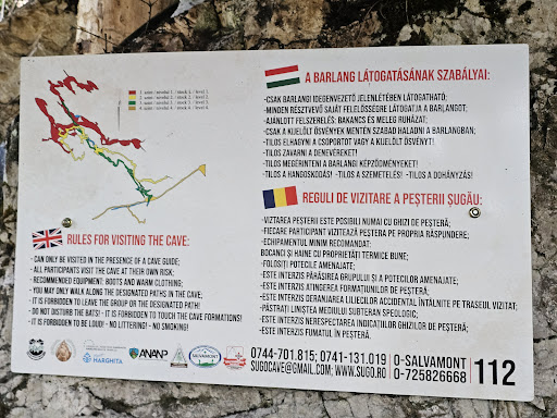 Drumul lung si prafos pana la pestera, nu a speriat pe nimeni. Locuri de parcare sunt foarte putine, dar ne-am descurcat si noi si ceilalti care au dorit sa vada pestera. Am luat apoi coasta la picior si am ajuns la "birouri" (cabana celor ce gestioneaza pestera). Din pacate baiatul de acolo nu intelegea nimic romaneste, ceea ce poate face neplacut totul. Curat, inclusiv cele doua toalete situate un pic mai sus in laterala cabanei, extrem de important pentru un turist care bate cale lunga. Am urcat la pestera (drumul e abrupt, insa poti urma poteca marginita de balustrade la lemn, fara graba). La poarta intrarii in pestera, mai era un grup, care il astepta pe baiatul de la bilete sa le fie ghid. Noi am intrat cu 20 min dupa ei, cu un alt ghid, care vorbea romaneste si care avea un zambet permanent pe fata si o bucurie de a fi cu oameni : Kriszta Biro. O frumusete de tanara, joviala, glumind mereu cu noi inainte de intrare, ne-a dat lanterne de mana si primele indicatii. Apoi am intrat. Mereu atenta la noi, la siguranta noastra, ne astepta apoi sa ne arate minunatiile - pe langa stalactite si stalagmite si combinatiile dintre ele, aici mai sunt si coralite. Am vazut, la lumina lanternelor, pomul de Craciun, pe Fecioara Maria, l-am vazut si pe Mos Craciun... Cele mai frumoase au fost povestile Krisztei - despre sticlele cu alcool lasate in pestera, despre greselile haioase din exprimare, despre experienta de a ramane in intuneric profund in pestera si puterea de a iesi la lumina mai apoi, despre acustica, niveluri de explorare ale pesterii, despre lilieci, despre multe altele. Desi e un traseu relativ scurt, cu povestile si cu deschiderea spre oameni, au reusit sa faca din vizitarea pesterii o bucurie frumoasa. Nu mai pui ca unei fetite i se facuse frig si Krista i-a dat hanoracul ei. La iesire sa treceti pe la Izvorul iubirii, apa e buna si rece. (noi am lasat in apa din vale, langa masini) berile la rece pe cand ne-am intors erau exact cum trebuie - habar nu aveam de povestea ghidului ce isi lasa bautura in pestera. Felicitari si...
