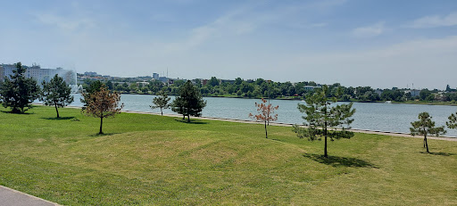 A great place for a small walk around the lake. A good place for jogging. The shores of the lake have some restaurants even one restaurant on the lake, a swimming pool, an ice-skating ring, doughnuts place, creeps place, an outside club a beach for sunbathing but the watter is not ok for a bath, you have to decide if you want to swim in it. This lake is an artificial lake built in the communist period to be a overflow...