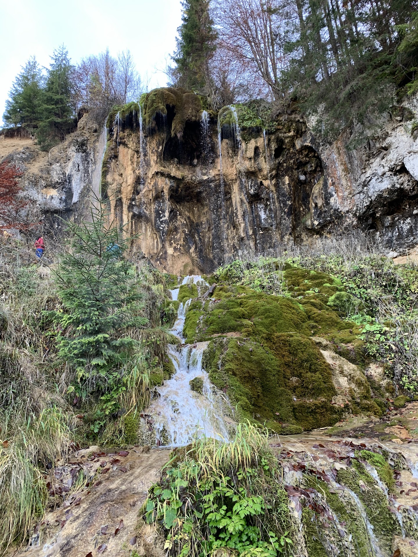 After leaving the car at the end of the road and starting to walk slowly, Pişoaia Waterfall was slowly discovered. Pişoaia Waterfall, also known as Miresii Waterfall, is declared a landscape reservation and covers a fairly large area, respectively 2.5 hectares. The 25-meter waterfall flows over a rock made of crystalline limestone, descending slightly to the valley in terraces, over the rock and moss, so that the overall picture is spectacular. Strips of water descend sharply and fall off in fans, creating a transparent curtain of cold water splashes. I understood from the locals that in spring, when the snow starts to melt, the waterfall is very rich, increasing its spectacularity, and in winter it looks like...
