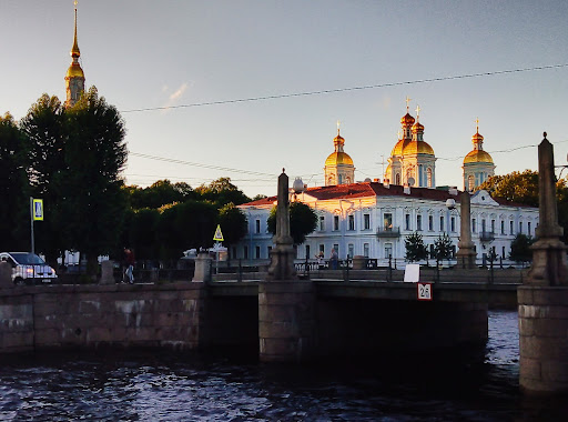 Great view of the Nicholas Naval cathedral and the green domed church of St Isidor and Nicholas. If you walk along the canal you come to another bridge with a great view of Mariinsky theatre (old and new) and if you turn round you see the Nicholas Naval cathedral and blue domed Trinity church in the background. Hard Rock cafe is nearby. Also the Yusupov garden and rather interesting Дом Городских Учреждении - a strange castle like building with an owl on top. The downside to all this is you have to walk from Sadovaya Metro but it isnt far (in summer when there is no ice). A new line near Mariinsky...