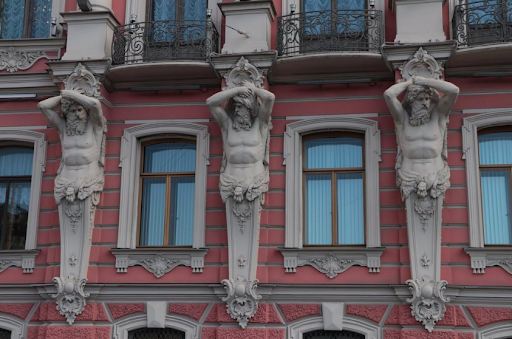 The building possesses an elegant Neo-Baroque exterior highlighted by half figures of human males holding up the ornate pillars. It is very attractive to see from the outside if you happen to be in this area of the city during your visit to St. Petersburg.