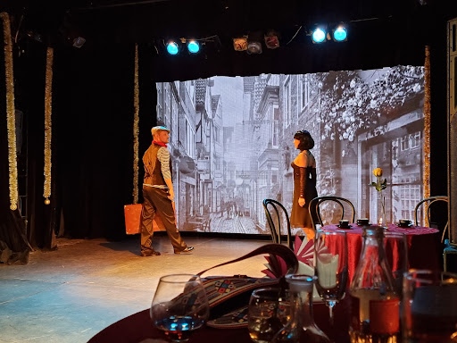 При заказе билетов сайт заведения показывает места, можно выбрать, что я и сделала. Однако, пройдя в зал, нашла наши места уже занятыми, официантка сказала, что никаких мест нет, только столик, кто раньше пришел, тот лучше сел. Ну супер, неприятно. Сели, от стены справа тянет холодом, очень некомфортно, они стену прикрыли шторой типа задрапировали, но не помогло, при этом на улице вокруг нуля, а за столиком тянет в бок холодом(. Я здесь впервые, думала, что представление будет хотя бы среднее, это же Театральный центр, но уровень слабый, это больше ресторан, артисты приглашают людей из зала поплясать с ними на сцене, мысль неплоха, но к концу вечера многие напились, поднялся свист, пьяный визг, и тд. Короче, не интересно, жаль...