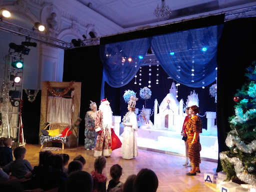Read moreБыли сегодня с сыном на предновогодней постановке "Снежная сказка про девочку и королеву", что проходила в белом зале. Помещение небольшое, но очень уютное. Первые три ряда предусмотрены для деток, остальные для взрослых или взрослых и маленьких детей. В целом, даже с дальних рядов хорошо всё видно. Актёры пели здорово, мне понравилось. Костюмы красивые, кроме девочки, есть недоработки по сочетанию в целом образа. Здорово, что во время спектакля было общение с детками: кидали снежки, отгадывали загадки, строили слово из кубиков. В конце был общий хоровод, и даже наш малыш 1,10 лет пошёл вместе со всеми)) и затем общее фото со всеми героями сказки. В гардеробе принимают пакеты с одеждой, работают быстро. Туалет чистый. А да, перед спектаклем за полчаса водят хоровод у ёлки в фойе с дедом морозом и...