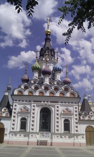 Read moreПоначалу в прекрасном архитектурном облике этой церкви 1906 года смутило наличие кокошников, что характерно для храмов 15 - 17 веков, но вспомнилось, что при Николае втором было популярно возрождение древнерусских традиций впоследствии получивших название псевдорусский стиль. Кроме кокошников интерес архитектурного решения храма в том, что крупный шатёр окружён многочисленными пёстро разукрашенными мелкими главками. "В скорбях и печалях утешение" выглядит очень празднично.