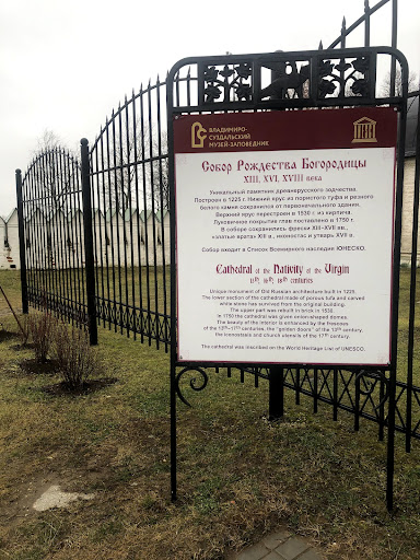 Read moreБогородице-Рождественский собор в суздальском кремле — бывший православный храм и кафедральный собор; один из сложнейших памятников древнерусского зодчества, вобравший в себя особенности строительства XI—XVII вв. В настоящее время имеет статус музея.