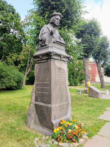 Read moreПамятник гуманисту и основателю финской письменности лютеранскому епископу Микаэлю Агриколе был установлен в 1908 году у входа в Выборгский лютеранский собор. В ходе советско-финской войны (1939-1940 гг.) он был утрачен, а восстановлен только в 2009 году. Сейчас он находится на Театральной площади, близ Выборгского лютеранского собора Петра и Павла. Автором памятника является скульптор Эмиль Викстрём. На постаменте сбоку на трёх языках приводится библейское изречение: «Блаженны миротворцы», а спереди стихотворная строчка на финском языке «Kylle se kwle Somen kielen ioca ymmerdä Kaikein mielen» («Кто в души всех людей проник, постигнет...