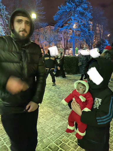 Стали свидетелем незаконной коммерческой деятельности с использованием объектов дикой фауны\экзотического животного у большой ёлки на памятнике с Шуриком и Лидочкой. Мужчины предлагают сфотографироваться с совой и обезьянкой (на улице минус, она одета в тонкий костюм Санта Клауса). Людей толпы. Животные в стрессе. Сердце кровью обливается.