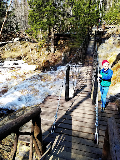 Read moreУдивительно красивое место. Название водопада — финское слово, обозначающее «окуневый порог» или, по другой версии, «пороги водяного». Ахвенкоски — самый большой водопад из каскада четырёх равнинных водопадов, которые все вместе называются Рускеальскими водопадами, из-за близости этого места к посёлку и горному парку «Рускеала». Мы как раз таки заехали сюда, двигаясь в знаменитый мраморный карьер. Воды водопада окрашены в очень насыщенный, коричневый цвет. Это связано с большим содержанием в них железа, а также органических соединений, попадающих в реку из соседних болот. У меня было впечатление, что это просто такая подача кваса))) 🤩... Цвет точно такой же)) Что касается обустройства этой природной достопримечательности, то здесь все на высшем уровне-аккуратные деревянные настилы, канатные подвисные мосты, все имеют прочные поручни и передвигаться по ним удобно. Касса работает быстро, несмотря на большой...