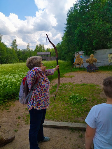 Дорога заняла 2,5 часа, мы приехали с детьми. На месте нам в шутливой форме очень кратко рассказали, кто такие варяги и чем они отличались от викингов. Затем разделили на две группы и показали:
