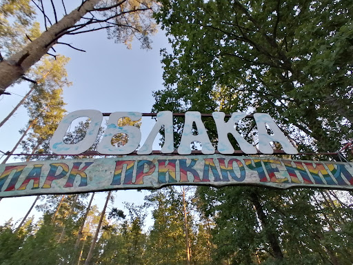 Парк развлечений "Облака" с первых шагов предупреждает о том, что плохое настроение останется за территорией. Здесь и веревочный городок от простого до супер сложного уровня, и небольшой скалодром. Тем, кто боится высоты, лучше наблюдать и охать снизу за смельчаками, рискнувшими покорить высоту. Лес там просто волшебный, сосновый и наполненный светом. Для самых маленьких есть детский городок, необычный, т.к. тоже с интересной полосой...