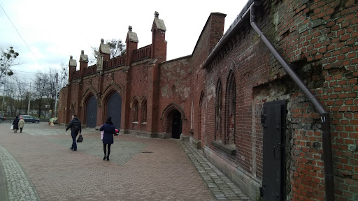 Read moreФридландские ворота (нем. Friedländer Tor) — одни из семи сохранившихся городских ворот Калининграда. Расположены на перекрёстке проспекта Калинина и улицы Дзержинского, примыкают к парку Южный (бывший парк имени 40-летия ВЛКСМ). В воротах расположен музей. Название ворот связано с городом Фридландом, нынешним Правдинском. Первые Фридландские ворота были построены в XVII веке, однако они располагались не на месте нынешних. Ныне сохранившиеся Фридландские ворота стали последними воротами Кёнигсберга(то есть были построены последними). Точная дата их строительства неизвестна, приблизительные даты — 1857—1862 годы. Также неизвестно, кто был их архитектором. В начале XX века устаревшие и утратившие военное значение ворота вместе со всем вторым вальным обводом были проданы военным министерством городу. Тогда движение транспорта через них было прекращено, так как часть ставшего ненужным оборонительного вала была срыта, и дорога на Фридланд (нынешняя улица Дзержинского) стала проходить сбоку от ворот. После войны ворота пустовали в течение долгого времени, потом в них располагался склад. В конце 1980-х годов в Южном парке проводились работы по расчистке территории и очистке дна многочисленных прудов парка. В ходе этих работ было найдено много старых предметов. Вскоре в воротах был организован музей, основой коллекции которого и стали найденные в парке предметы. Как и все ворота Кёнигсберга, Фридландские ворота были выстроены в стиле неоготики. Имя автора проекта неизвестно, иногда авторство приписывается Фридриху Штюлеру. Фасад ворот со стороны города разделён пятью контрфорсами на шесть частей. Контрфорсы завершаются остроконечными двухскатными декоративными башенками, которые выступают над декоративным парапетом с зубцами. Все внешние отверстия ворот (проезды, окна, двери) выполнены в виде стрельчатых арок и украшены перспективными порталами. Две центральные части ворот заняты проездами. Размеры проездов — 4,39 м в ширину и 4,24 м в высоту. Части по краям заняты казематами. Поверхность фасада ворот украшена как бы сеткой, представляющей собой ромбический орнамент. «Нити» этой сетки выложены из кирпичей другого цвета. Фасад ворот был украшен статуей великого комтура Фридриха фон Цоллерна, которая не сохранилась (исчезла после войны). Другая статуя, изображающая великого магистра Зигфрида фон Фейхтвангена — основателя Среднего замка в Мариенбурге(ныне г. Мальборк, Польша), расположена на внешней стороне ворот. Автор скульптур Вильгельм Людвиг Штюрмер. В настоящее время скульптуры восстановлены (скульптура Фейхтвангена — в 2005 году, Цоллерна — в 2008 году). С внешней стороны ворот...
