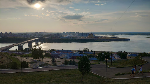 Смотровая площадка на Стрелку (место слияния реки Ока с рекой Волга). Непревзойдённые виды (расположена на высоком берегу центральной части Нижнего Новгорода) на Канавинский мост, Собор Александра Невского, стадион "Нижний Новгород". Памятник Жюлю Верну пользуется большой популярностью у детей, без остановки фотографируются внутри корзины воздушного шара :) Рядом (не более 3-4 минут пешком) расположен памятник Максиму Горькому. Транспортная доступность хорошая, от Большой Покровской, впрочем как и от практически любого места центра Нижнего Новгорода, можно добраться за 10-25 минут пешком (средним шагом), с парковками проблем нет. Рекомендую к посещению, открывающимися видами не будете...