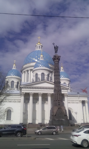 Монумент в виде колонны на постаменте установлен в память о русско-турецкой кампании 1877–1787 годов на площади перед Троицким собором лейб-гвардии Измайловского полка, который был возведен в 1828–1835 годах по проекту Василия Стасова.
