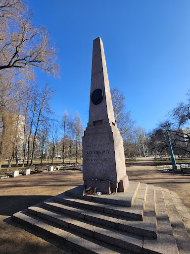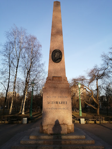Read moreМесто конечно волнующее, но пока до него доберёшься, весь трепет души пропадает, в отличие, например, от места дуэли Лермонтова в Пятигорске. С любой остановки общественного транспорта надо достаточно долго идти по шумным современным магистралям, что отнюдь не добавляет настроя души. Сам обелиск расположен в небольшом парке, куда ходят местные жители отдохнуть, расслабиться, выгулять собачку и т.п. Есть скамеечки. По мне так гораздо атмосфернее двор на Мойке 12. Второй раз я сюда не пойду, но посетить...