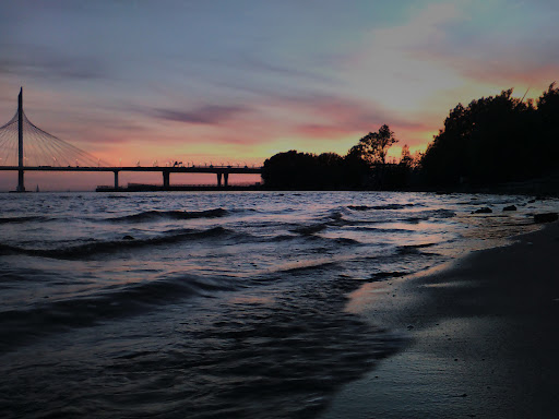Read moreОтлично обустроили набережную. Настил из лиственницы, по которому приятно ходить, стильные деревянные лавочки и лежаки. Прекрасный вид на реку, залив, новый мост, под которым проходят парусники. Есть также детская и спортивная площадки, обе очень современные и модные, похоже, что делали это все иностранные дизайнеры. Есть теннисные столы. В общем рекомендую. Из минусов: деревянные лежаки не очень удобные, нет проката теннисных ракеток, мало точек общепита. И туалет на карте вроде отмечен, а по факту мы его там не заметили. В целом место очень классное, жалко что маленькое. Находится примерно на одинаковом расстоянии от станций метро Новокрестовская и Крестовский остров (15...