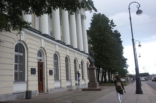 Институт русской литературы Академии Наук ( Пушкинский Дом) и Литературный музей находятся в великолепном здании бывшей Таможни, построенном в 1832г. по проекту архитектора И.Ф.Лукини в стиле классицизм. Здание является памятником архитектуры XIX века. В то время порт находился на Стрелке Васильевского острова. По планам начала XVIII века площадь, находящаяся за Биржей, должна была стать главной городской площадью (представьте её себе без занимающего почти всё её пространство Института им.Д.О.Отто, построенного там в 1904г). Ещё в 1809г. на Тучковой набережной (наб.Макарова), напротив особняка Лопухиных, на месте которого построена Таможня, была сделана пристань со скульптурами львов. Здание Таможни с круглой красной башней украшено тремя бронзовыми статуями по углам фронтона. В центре - бог торговли Меркурий, слева - богиня плодородия Церера, справа - бог моря Нептун, с веслом вместо трезубца. В 1885г. порт был перенесён на Гутуевский остров, здание Таможни занимали различные ведомства. С 1927г. здесь размещается Институт русской литературы АН и самый первый и самый крупный национальный общелитературный музей. Постоянные экспозиции - это залы, посвящённые известным русским писателям и поэтам: Пушкину, Толстому, Лермонтову, Тургеневу, Жуковскому, литераторам Серебряного века и другим. В залах представлены письменные столы, мебель из их кабинетов, различные личные предметы, живопись, графика, акварели, старые издания их произведений и другие исторические ценности. Мне очень нравится этот музей. Уже при входе, читая мемориальные надписи с известными именами основателей музея, сотрудников института, потом поднимаясь по великолепной лестнице с часами со скульптурами на площадке, ощущаешь значимость этого места. Главный зал с колоннами и сводчатым потолком с росписью и знаками созвездий для ориентирования мореплавателей тоже создаёт особое настроение. В залах глубоко чувствуется атмосфера, которая сопутствовала творчеству этих писателей и поэтов. Я прихожу сюда 6 июня, в день рождения Пушкина, когда вход в музей свободный, а народу очень мало. Перед зданием стоит бронзовый памятник-бюст А.С.Пушкину с интересной историей. Он был создан И.Н.Шредером в 1899г. и установлен в саду Александровского лицея на Каменноостровском проспекте. После преобразования лицея в 1917г. в Пролетарский политехникум этот памятник, на постаменте которого был герб лицея, был снесён, бюст перенесён на лестничную площадку, позднее передан в Государственный музей городской скульптуры. Постамент был утрачен. В 1999г., в год 200-летия со дня рождения Пушкина, памятник был установлен на новом постаменте перед...