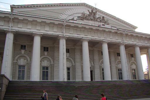 Read moreЗдание построено Тома де Томоном в 19 веке.На месте предыдущей Биржи, возведенной при Екатерине 2 ещё Джакомо Кваренги. Здание было построено именно на Стрелке Васильевского острова, так как в 18 веке здесь находился порт. Товары разгружали и размещали в пакгаузах(слева и справа от Биржи два одинаковых строения. В одном из них Зоологический музей в другом музей и институт Почвоведения). А на Бирже товар сбывали.Тут неподалёку было возведено здание таможни- ныне Пушкинский дом( институт русской культуры). Для того, чтобы архитектурный ансамбль на Стрелке В.О.состоялся была искусственно насыпана полукруглая Биржевая площадь и как доминанты, две симметрично расположенные по отношению к зданию Биржи, Ростральные колонны- маяки. На здании восседает Посейдон, окруженный тритонами с рогами изобилия в руках. Построено здание в эпоху классицизма, и призвано было стать репликой Парфенона в Греции.Это русский Парфенон. В советское время в здании размещался военно-морской музей. Интересный. С редкими экспонатами, например,там хранился ботик Петра Первого-"дедушка русского флота". Это корабль, на котором Петр учился ходить под парусом. В 2010м я посетила музей накануне закрытия. Здание запланировали поставить на капитальный ремонт. А сам музей перевели в новое здание на площади Труда(Благовещенской). Я обратила внимание на многочисленные протечки и плохое состояние помещений. Много лет уже здание на ремонте, бюджет ремонта постепенно рос, так как открывались все новые проблемы с сооружением. В планах - здание отходит Государственному Эрмитажу и там открывают нумизматический отдел знаменитого музея.Вот- вот надо ожидать торжественного открытия нового филиала Эрмитажа в здании Биржи на Стрелке...