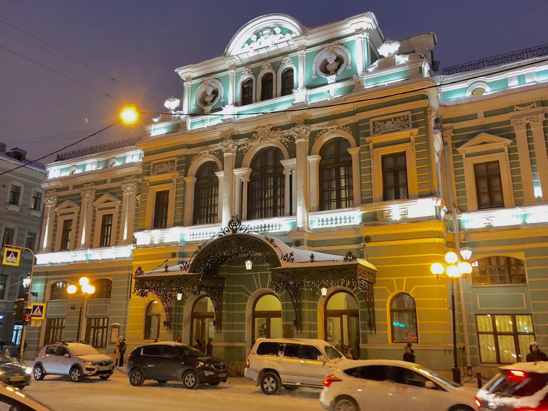 Театр стоит в центре СПб, подходить к нему по набережной - удовольствие. Красивый, парадный вид Санкт-Петербурга. Центральный вход - на основную сцену, слева от центра вход - на малую. Видно и слышно отовсюду прекрасно. Смотрели спектакль"ДАМА С СОБАЧКОЙ", отзывы о спектакле в сети неодназначные. Нам понравилось, построчник, именно Чехов. Говорили, что скучный спектакль, это не так, актеры показывали неспешную жизнь и скуку на курорте. Минималистичные декорации, великолепное использование звука ( поезд, звуки прибоя, крики чаек) и запаха - арбуза. Отражение курорта. Больше понравилась 1 часть, во второй Валентина переодетая в Гейшу, да и все остальные средства выражения не так идеально продуманы, как в первой части. Собачке отдельный респект. Сегодня встретили студентов с Моховой в БДТ, посмотрели интересный, добрый, пронзительный спектакль "ДЕНЬ ЧИСЛА ПИ", в нем играли студенты курса Красовского: М. Гутман и Д. Шумаев и курса Черкасского: А. Соколова. Актерская игра изумительная, проживали на сцене жизнь остро, драматично, надрывно и очень по-человечески. Ни грамма фальши. Браво! Большая сцена, угол подъема зала не большой, смотрели с первого ряда и кажется сзади не все хорошо видно, в антракте зашли на ярус, очень ограниченный вид справа, слева чуть лучше видно, не ограничивает зрение стена (именно на этом спектакле). Спектакль"ХОЛОПЫ" Очень понравилась постановка - великолепная, масштабная, увлекательная, динамичная. Многослойные смыслы. Очень легко смотрелась, при этом мыслей после спектакля целый рой. Актеры свободно разговаривали на французском и китайском, что придало особую достоверность (перевод шел на экране) Играли, как жили, мы поверили. Два антракта за 4ч15мин., во время них можно выйти, а можно смотреть далее, шло по кругу действие. "КАМЕННЫЙ ГОСТЬ", Нам не очень понравилось, но что посмотрели - не пожалела, интересные режиссерские решения, идёт 1.30, инноваторские декорации и костюмы. Рекомендовать бы не стала "Я БЫЛА В ДОМЕ И ЖДАЛА, ЧТОБ ДОЖДЬ ПРИШЕЛ". Атмосферный спектакль, прекрасные декорации, жизненные, натуральные, обширные. Как бы не о чем и о многом, о не любви, о проходящем времени. Многие считают, что о женском одиночестве. Чудесно вставлена песня" Последняя поэма"(из "Вам и не снилось", фильм), она явно здесь на месте. Актеры великолепно отыграли. Экскурсия"ПЛАНЕТА ЛАВРОВ", Длилась 3 часа, вела театровед И. Шимбарович, обрисовала в целом эпоху театра во время служения Лаврова, показала его гримерку, личные вещи, документы, записки, в целом рассказала о театре. "" Ф. М. ИГРЫ", Хореодрама, если взять все произведения Достоевского, порезать на фразы, буквы, абзацы, предположить, что они могут двигаться, летать, изгибаться, говорить разными голосами, плавиться в воздухе, как мысли, затем загрузить все это в голову зуммера, желательно, чтоб он говорил рэпом. Одна из фразомыслей начинает преобладать, все остальные тянутся, слушают, притихают, либо наоборот, шикают на нее, гонят, изгоняют, доводят до самоубийства. Вот это все. Мне кажется , что для просмотра нужно неплохо ориентироваться в творчестве Достоевского и любить его, тогда ты понимаешь, что за герой стоит за словами, либо образом. Процентщица, Раскольников, Варвара, игроки и т.д. они перетекают в друг друга, видоизменяются. Страшно забавно. Но на любителя "УТИНАЯ ОХОТА"закадровый смех, куко