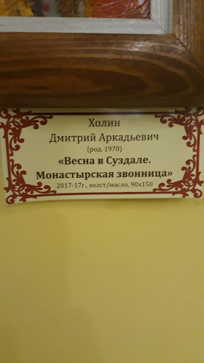 Read moreЭто Центр ПРОПАГАНДЫ изобразительного искусства, а не картинная галерея. К сожалению. Пришли туда посмотреть картины художников знаменитой владимирской школы - а попали на "выставку" репродукций импрессионистов. Причём неприятно, что ни на афише, ни даже в кассе не было ни одним словом отмечено, что нас ждут репродукции - фотопечать на холсте, 600 рублей за штуку в Мультифото. А билеты, между прочим, по 150 рублей продают. Не согласна, что импрессионисты нуждаются в такой "пропаганде". Спросили у сотрудницы, где экспозиция художников владимирской школы - она ответила, что сейчас они убраны, на их месте "выставка импрессионистов". Ставлю этому сомнительному центру 3 звезды за приветливых нарядных сотрудниц, за чудесное здание с богатой интересной историей и за несколько картин художников владимирской школы, Дмитрия Холина и Виктора Бычкова, случайно оставшихся на лестнице - ярких, звучных, выпуклых и, действительно, очень выразительных, надолго нам запомнившихся. В общем, странной деятельностью этот Центр пропаганды занимается вместо того, чтобы владимирскую школу живописи пропагандировать. Людей в залы пришло много, а самое интересное им не...