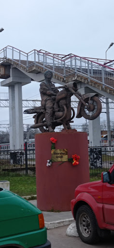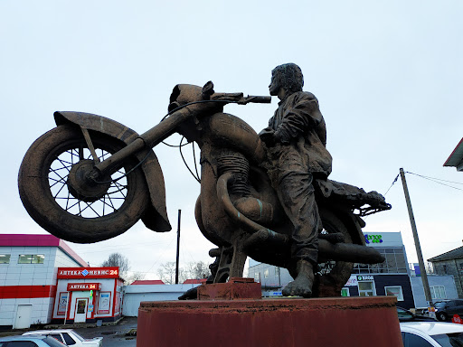 Тот случай, когда скульптор - "я художник, я так вижу". Не припомню я, что бы в биографии Виктора Цоя упоминалось про его любовь к мотоциклам, он про них никогда не пел и не ездил в тех немногочисленных фильмах, в которых успел сняться. Зачем его скрестили с терминатором Т-800 - остаëтся только догадываться. Видать живы ещё стереотипы в головах отдельно взятых граждан, что все рокеры - мотоциклисты, и что все...