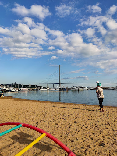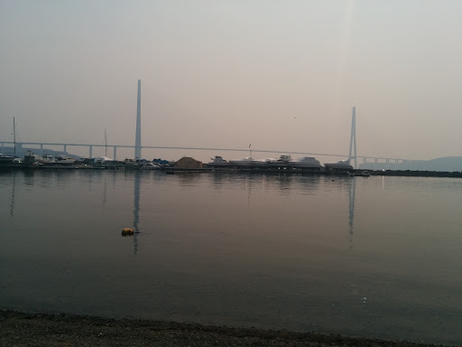 Уютная бухта,прекрасный вид на мост Русский,место для прогулок с детьми, времяпровождения с компаниями,для купания вряд ли подходит,висит табличка купаться запрещено,стоянка яхт и катеров закрывает море, территория ухожена,чисто,много беседок для шашлыков,есть туалет,в целом для Владивостока более менее...