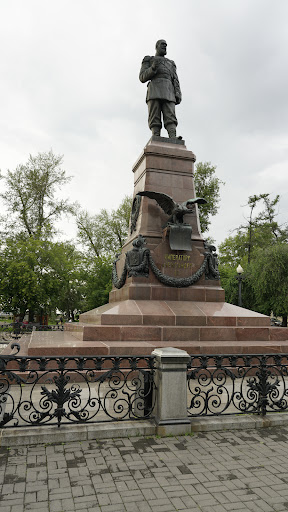 Read moreПамятник губернатору Иркутской губернии графу Муравьеву, заключившему важнейшую для для России сделку на дальнем востоке, за что собственно и получил вторую часть своей фамилии Амурский. После проведения переговоров вернулся в Иркутск, где по своей душевной скромности миновал торжественную встречу и оказался неопознанным в толпе встречающихся его зевак. К слову обратная дорога заняла у него без малого 3 месяца и к возвращению народного героя в городе Иркутске были возведены помпезные Амурские ворота, через которые граф так и не прошёл... Памятник же очень красив и символичен, пушки выкопаны стволами в землю, цепи с боевых кораблей, взгляд облачен на левый берег- миру с...