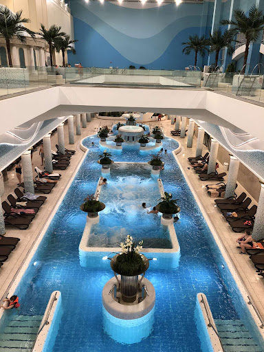 Худший аквапарк из всех что мы посещали. ( а посещали мы по меньшей мере 10-12 аквапарков в России и за рубежом.) Отзывы никогда не пишу, но тут я просто в ярости а дети в слезах. Были в аквапарке 20-11-2023 (понедельник) в компании с детьми 6,7,11,14 лет. Если вы идете в аквапарк для отдыха детей, то вам точно не сюда. Одни запреты. В этом парке обсолютно ВСЁ НЕЛЬЗЯ 😡. Платишь бешенные деньги ( билеты одни из дорогих по РФ), а по факту детям ничего нельзя кроме бассейнов. Наши школьники (6,7 лет) оказались вообще не в удел. В лягушатниках им скучно, а на горки нельзя 😭 даже детские ( потому что они с 8 лет). Надели жилеты, пошли покататься с детьми, но все равно не пустили 😡. Для ребенка постарше (11лет) всего 2 горки 🤯🫣. Ну что это за аквапарк? Да еще и за такие деньги. Ужас! Персонал ВЕСЬ злющий, с недовольными лицами. Они не следят ни за чем, кроме как выискивают, кто что нарушает и бегут быстрее к тебе с мантрой «нельзя, нельзя». Вот то что ребенок сидя на шезлонге в уголочке под пальмой ( никому не мешая), достал печенку , так это мы сразу блин услышали «нельзя, уберите» ( как они нас заметили вообще ума не приложу, они реально выпаливают). А вот то что нельзя с крестиком, сережками, кольцом обручальным - об этом нигде не указано. Об этом ты только узнаешь после того, как взял ватрушку, поднялся на 4 этаж, отстоял в очереди, и как только ребенок в предвкушении «счастья»- вас разворачивают обратно все это снимать🤬. Все нюансы я даже не перечислю. Я рассказала всего 2, но было их более 10. Мы брали билет на 4 часа, но еле высидели 3 ( час из этого в столовой). Шезлонгов свободных нет ( даже в пн) В душевой воняет мочой .