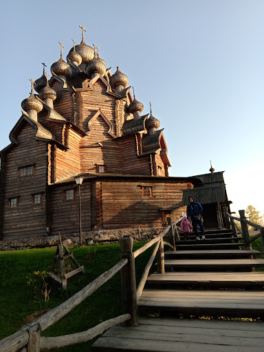 Read moreКрасивое уютное место. Правда, мы на экскурсию не попали, т.к. кассы были закрыты. Внутри храма побывали). Погуляли по территории, прошлись по эко тропе. К сожалению, нет ни единого указателя для маршрута. Мы запутались и пошли обратно. Часто встречались несколько протоптанных троп, решали в какую сторону повернуть. В итоге, видели прудик и один мост из двух. Очень жаль, что нет указателей. Поедете на гатчинские гейзеры, там та же картина - перепутье. Поедете на Ореховую гору, тоже самое - маршрут есть, но не подписан. Идёшь общей толпой наугад. Сам комплекс очень уютный, чувствуется энергетика дерева, супер мега приятно прикоснуться к творчеству мастеров 1871г. !!!А ведь стоит и по сей день деревянная, расписная постройка и поражает своим масштабом и величием! На территории пирожковая, столовая, туалет, сувенирная...