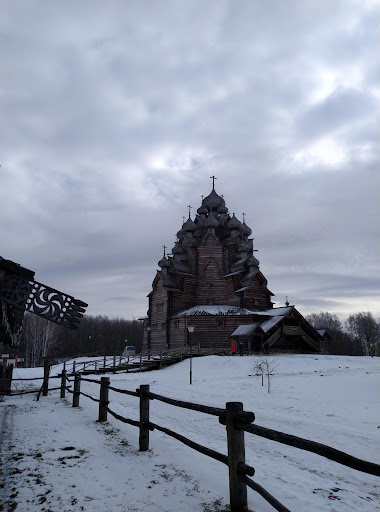 Идея и проект были хороши - создать комплекс деревянного зодчества в близи Санкт-Петербурга, чтобы люди помнили о великолепии и душевности русского деревянного зодчества. Воссоздать сгоревшую на Вытегорском погосте (Анхимово) деревянную многоглавую церковь, клетскую часовню, шатровую колокольню из Вологодской губернии, усадьбу заонежского крестьянина... Но видимо у реконструкторов кончились деньги или... начало было неплохое, но сейчас происходит очень грубая эксплуатация частично воссозданных объектов. Чего стоит экскурсия по дому заонежского крестьянина - в хлеву установлена гипсокартонная печь и сам хлев выдаётся за избу... а в самой избе (интерьеры - это самое интересное) за кодовым домофонным замком прочно сидит администрация (под видом реконструкции), так же чего стоят распечатанный на картоне иконостас и очень низкое зашитое псевдо-небо в храме Покрова Пресвятой Богородицы (закрыт остальной внутренний объём храма - а он громаден!) - самое мощное, что обычно создаёт в храме атмосферу Силы. Очень разочарована. В целом - выдаётся презентабельный издалека внешний вид с полностью отсутствующим содержимым. Кстати, да - по технической части тоже провал - древесина не обработана, ограждение, например, во многих местах стоит в воде, его крыша начала гнить - многое сделано очень грубо, непрофессионально. Так и хочется сказать - зачем людям лапшу на уши вешаете, выдаёте за достойную восхищения архитектуру такую подельщину?.. Очень больно за пошлое поругание нашего русского деревянного зодчества. Про парк вообще говорить не хочется, если пройти чуть дальше от небольшой и из-за этого перегруженной парковки - лес заброшен и не ухожен. Сразу видно - хорошего хозяина тут нет. PS: была там...
