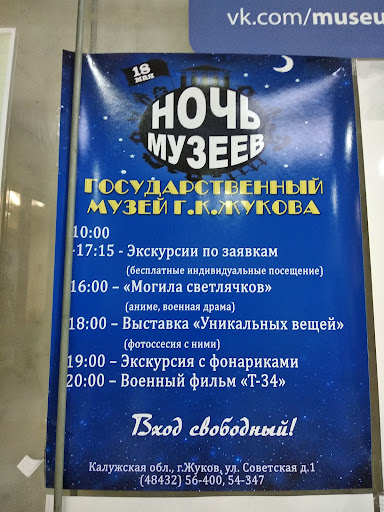 Read moreОтличный музей, посвящённый Жукову Георгию Константиновичу. Сам музей не большой,в нем исчерпывающая информация о жизни великого полководца. Также упоминаются другие герои района. Стоимость экскурсии по всему музею с подробным рассказом экскурсовода на 2взр и 2детей около 450руб. Сама экскурсия длится около часа,может и чуть больше. Мне понравилась подача материала нашим экскурсоводом Денисом-чёткий рассказ о жизни Жукова в сочетании и переплетении с жизнью всей страны. Диарама произвела...