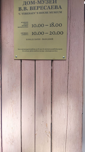 Read moreМузей хороший, интересный, сам Вересаев оказался очень интересным человеком, очень приветливая гардеробщица. Экскурсовод (я была в музее в сентябре) рассказывала интересно, но вела себя неуважительно. Посмотрела на меня сверху вниз и снисходительно вопросила: "Ну, Вы хоть что-нибудь из Вересаева-то читали?" Не думаю, что имеет смысл в таком тоне разговаривать с человеком, который оплатил индивидуальную экскурсию. Как мне показалось, экскурсовод вынуждает посетителей брать индивидуальные экскурсии, говоря, что группа не набирается. Экскурсии по 700 рублей. Экскурсовод сказала мне, что кассир сегодня на выходном и попросила рассчитаться наличкой... Но только за те 5 минут, пока я ждала такси после экскурсии, позвонило несколько человек с вопросом об экскурсии, и всем экскурсовод говорила, что группа не набирается, и им нужно приходить на индивидуальную...