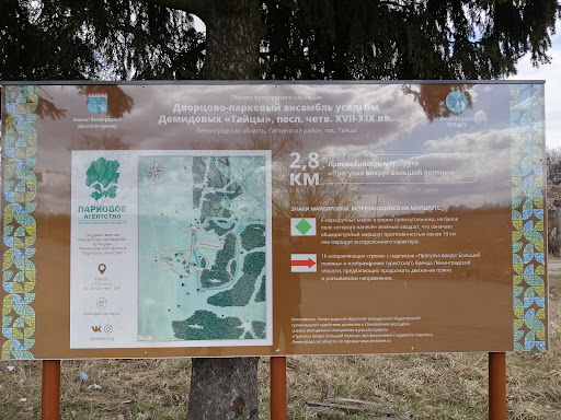 Read moreУсадьба в селе Тайцы была построена в 1774-1778 годах для А.Г. Демидова, который планировал поселить здесь свою дочь больной туберкулёзом. Однако хвойный воздух девушке не помог, а сам Демидов позднее сошёл с ума. Кстати, здесь же начинаются знаменитые Тайцкие ключи, питавшие когда-то пруды Царского Села по Тайцкому водоводу.
